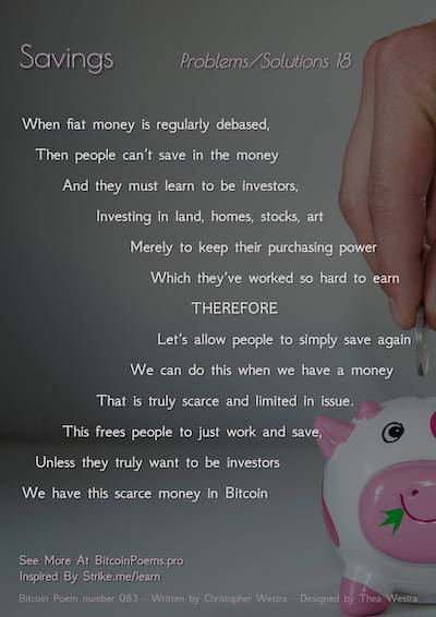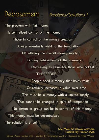 Just click on the links below to see each poem on a background. And check out The Bitcoin Effect to read my free book! And see Bitcoin Solutions to read about specific problems for which Bitcoin is the solution.